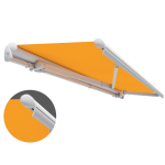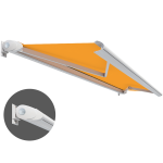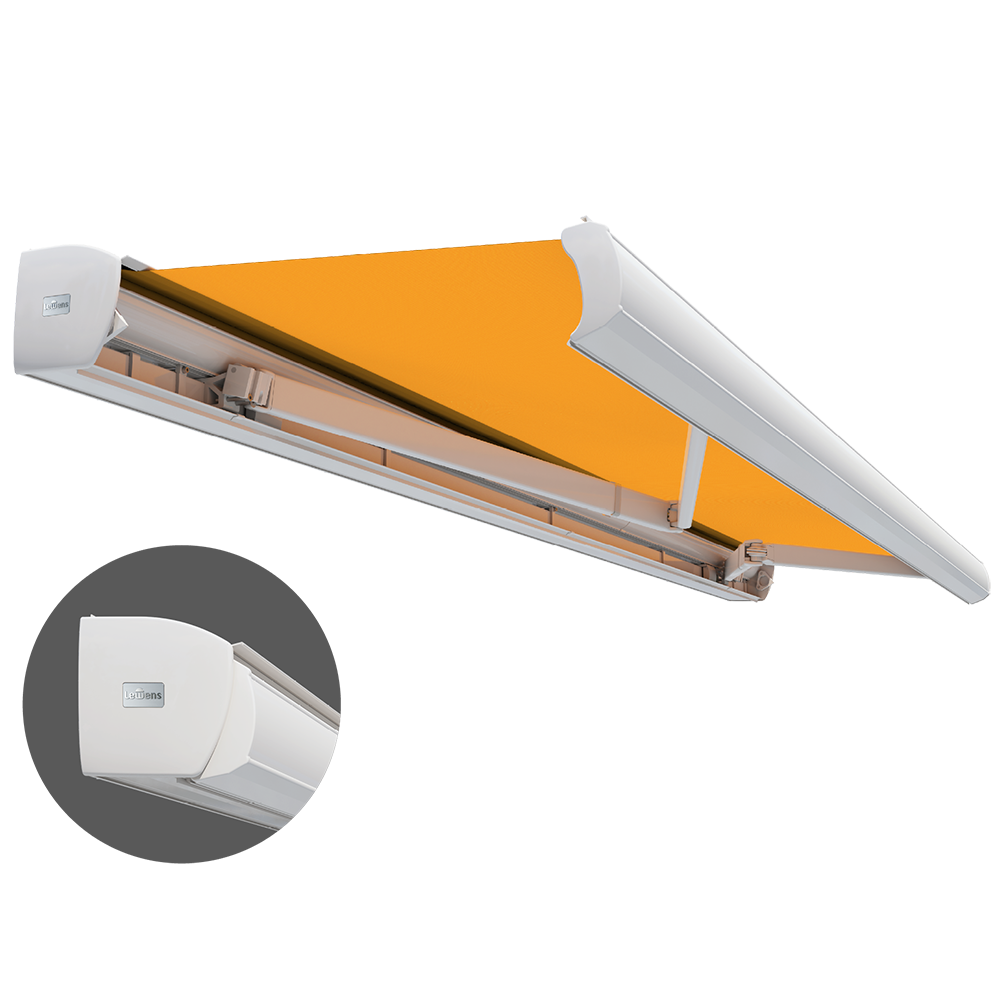 Bei eingefahrener Markise schließt das Ausfallprofil die Kassette vollständig. So werden Tuch und Technik zuverlässig vor Witterungseinflüssen.geschützt.